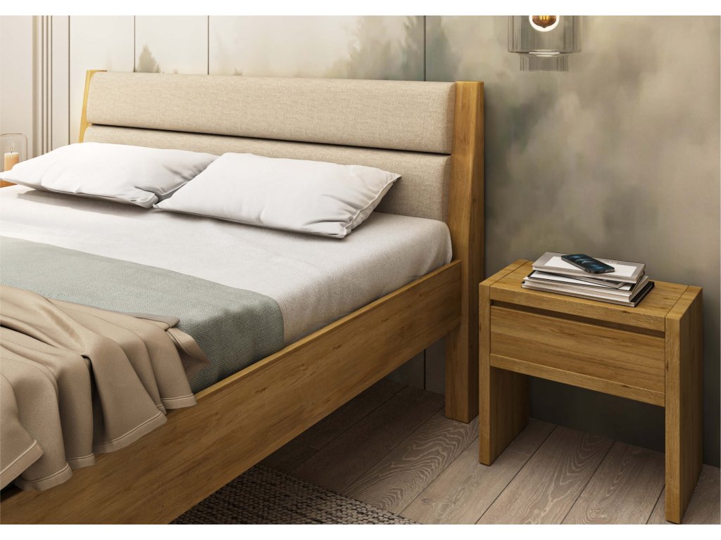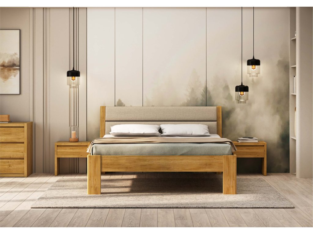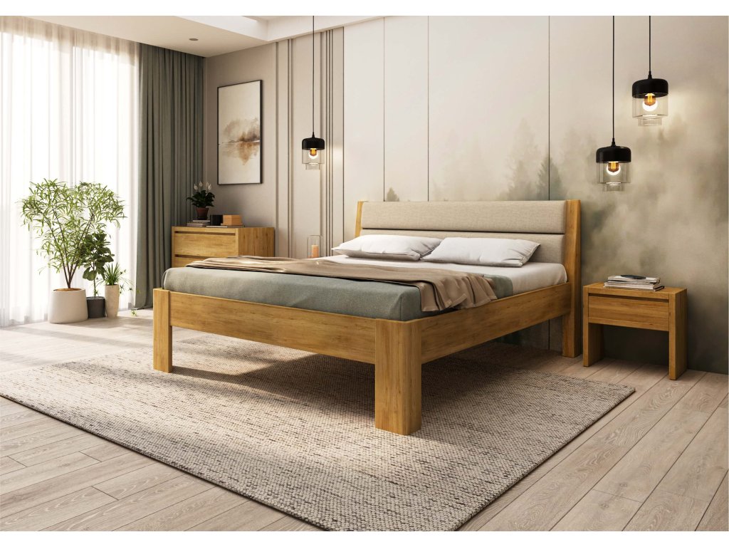 Dřevěná postel z masivu KALLIOPE II – moderní design a čalouněné čelo pro maximální pohodlí