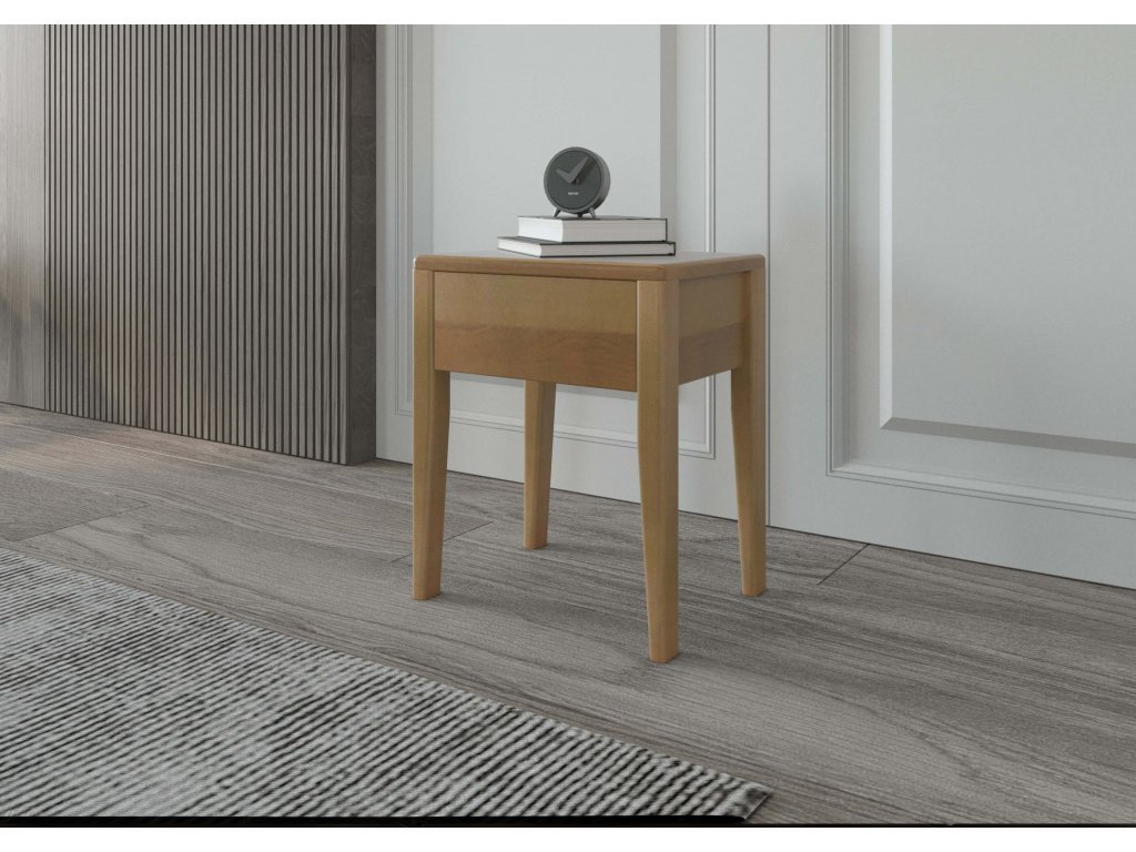 Noční stolek MINEROS zásuvkový z masivního průběžného buku, (nově jsme do nabídky masivů zařadili také buk jádrový cink). Přesáhlé čílko zásuvky umožní otevírání zespodu. Noční stolek je vhodný kombinovat s ložnicí MINEROS.
