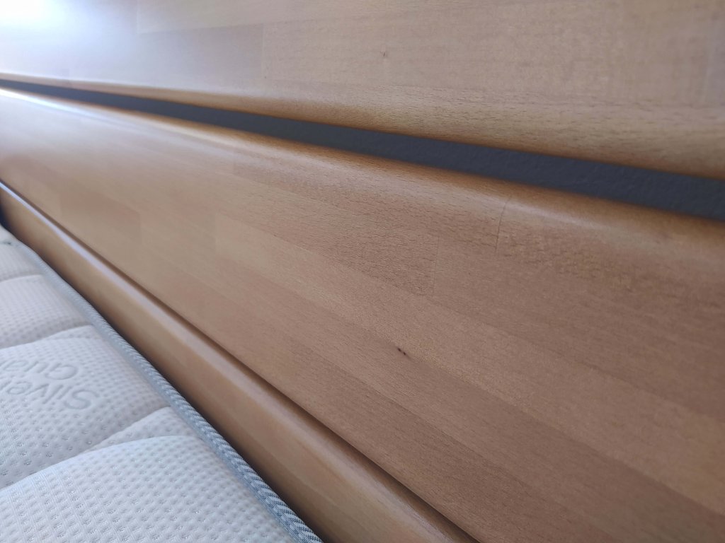 - Výprodejové provedení: buk masiv cink, dokončení lak tabák, rozměr postele 180 x 200 cm, výška postranice 50 cm, zaoblení bočnic.
